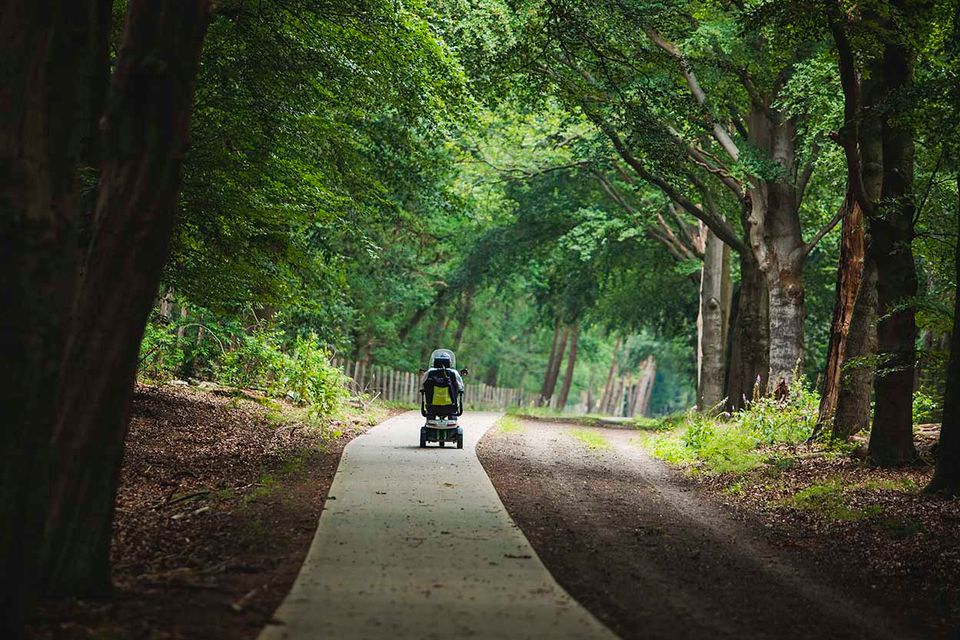 The landscape of the Veluwe consists largely of sandy soil and heathland. For this reason, the municipality of Ede has constructed a number of paved paths for wheelchair users and scooters.